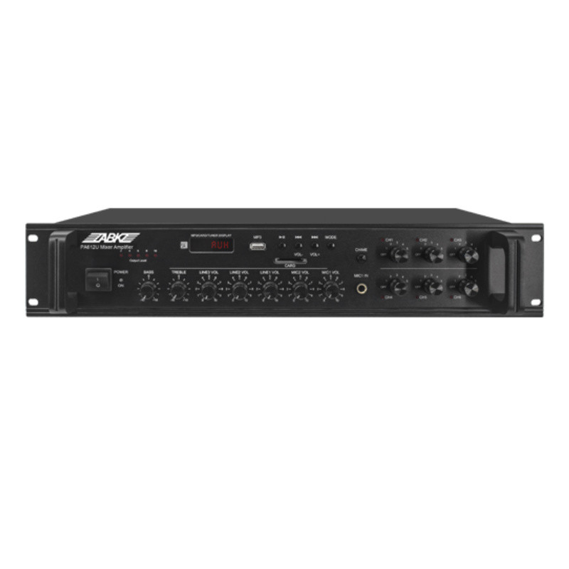El ABK-PA PA612U es un amplificador mezclador de 120W RMS con selector de 6 zonas, lo que permite activar o desactivar el sonido en 6 áreas diferentes y controlar el volumen de cada una de forma independiente desde el panel frontal. Este equipo es una solución integral para sistemas de megafonía que necesitan distribuir audio de manera independiente en diferentes áreas de un edificio (como oficinas, pasillos, almacenes, etc.)