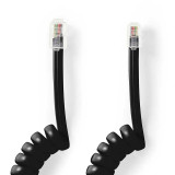 Cable de teléfono rizado con conectores Macho-Macho color negro 4P4C RJ9 de 2 metros.