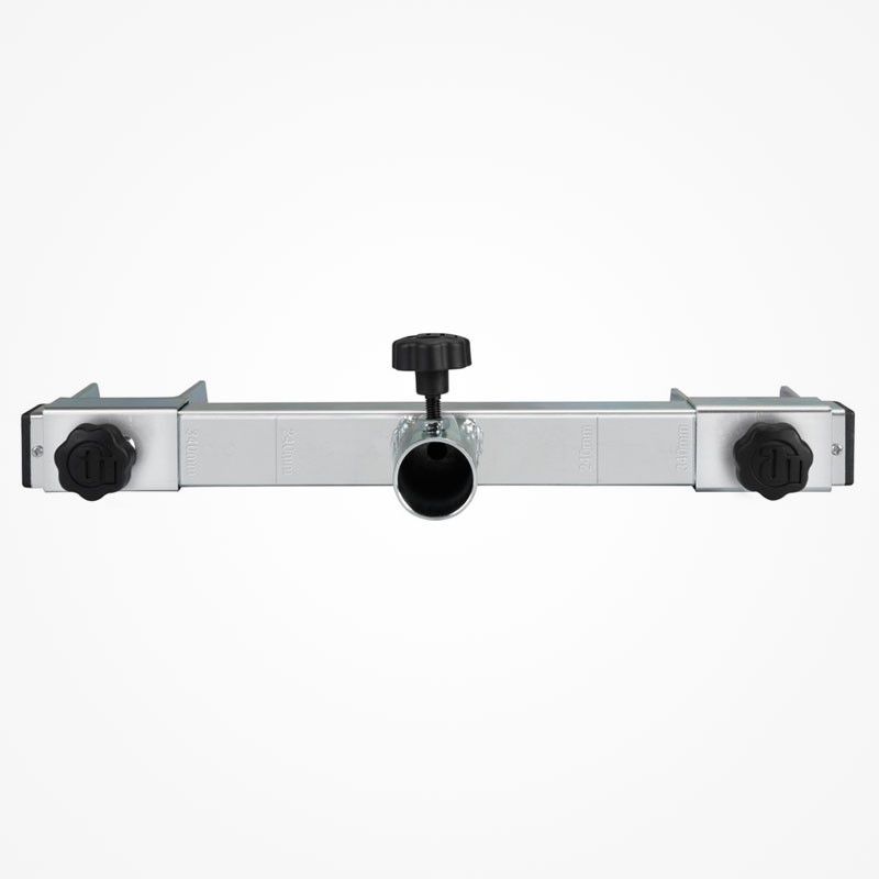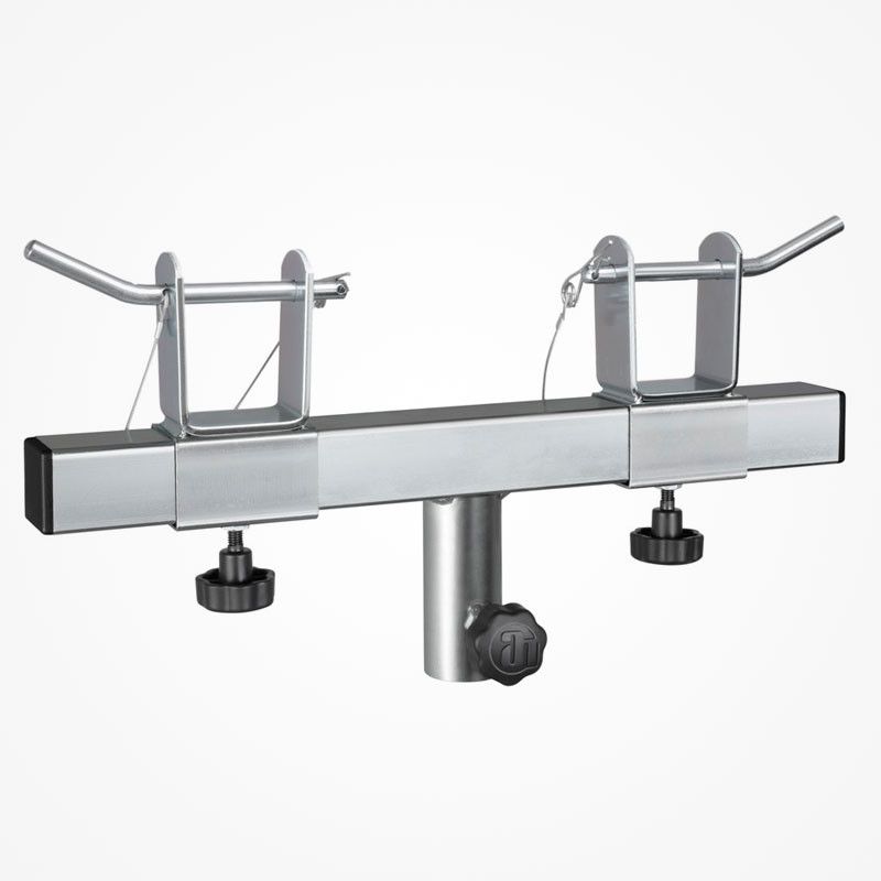Adaptador de Truss para montajes de trípode de 35 mm (por ejemplo, para soportes de altavoz) con ancho variable (20-40 cm). Las muescas para los sistemas de entramados comunes facilitan la configuración y asegurar una posición central. Las clavijas de fijación y chavetas están incluidos.