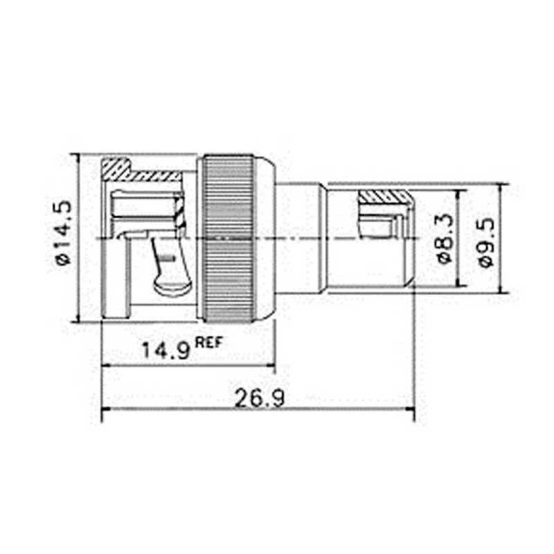 Conector adaptador con conexión BNC macho a conexión RCA hembra fabricado en metal chapado en Níquel de color plata.
