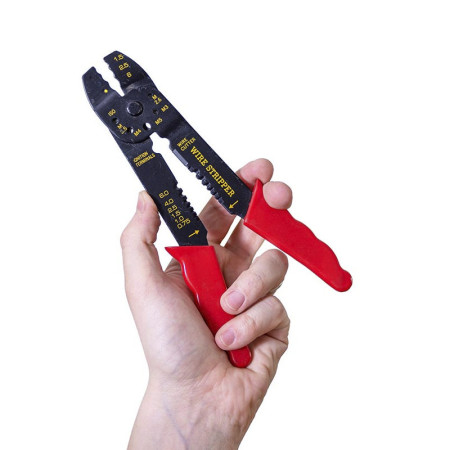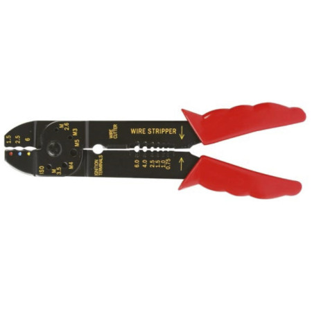 Alicates para crimpar Conectores FAST-ON AISLADOS con 4 funciones: crimpar, cortar, cortar y pelar.