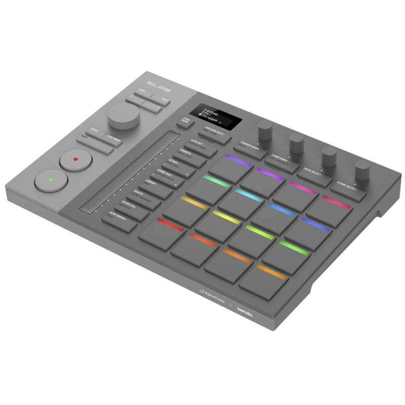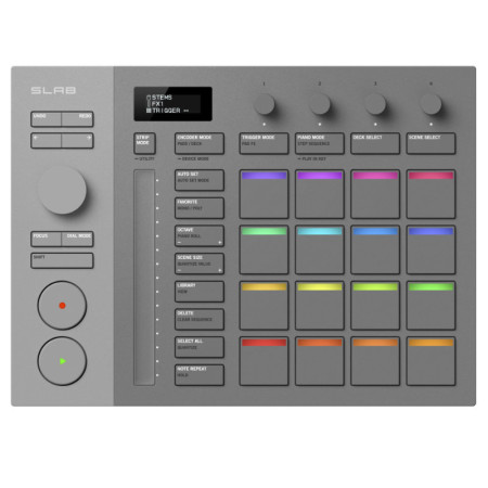 El AlphaTheta SLAB es un controlador MIDI de pads diseñado exclusivamente para el software Serato Studio. El SLAB busca ofrecer una solución de hardware práctica y táctil para la creación de ritmos, el sampling avanzado y las actuaciones en directo. Las características clave del SLAB incluyen Performance Pads altamente responsivos, una tira táctil de precisión y varios modos de codificador que permiten el control en tiempo real de funciones esenciales como EQ, Stems y efectos.