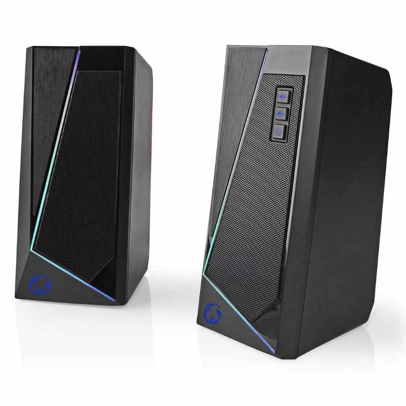 Juego de altavoces 2.1 para PC o smartphone mediante un conector jack estéreo de 3,5 mm. Potencia de salida de 33 W y un subwoofer de 15 W.