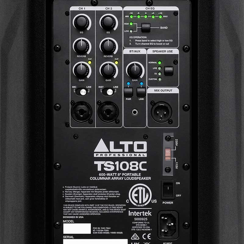 Altavoz PA de columna portátil de 600 W con DSP y Bluetooth Alto TS108C