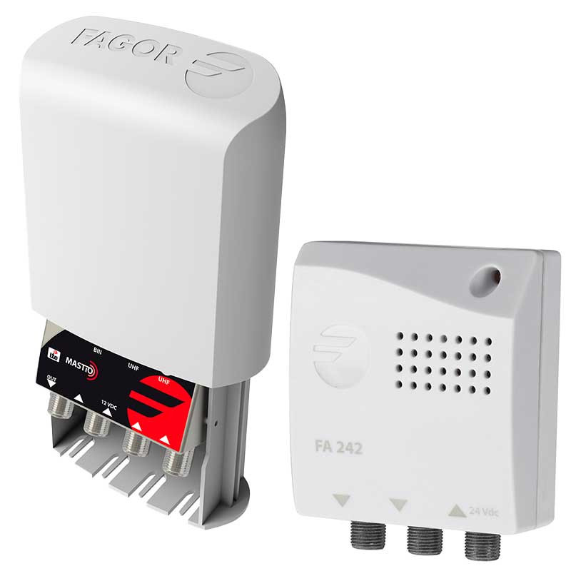 Comprar Kit compuesto de amplificador TV para mástil TDT FAGOR AML930 DC D2 y fuente de alimentación FA242