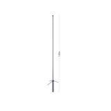 Antena de base fibra-vidrio bibanda con radiales. Potencia máxima: 150 W. Ganancia: 3 dBi / 5.5 dBi.