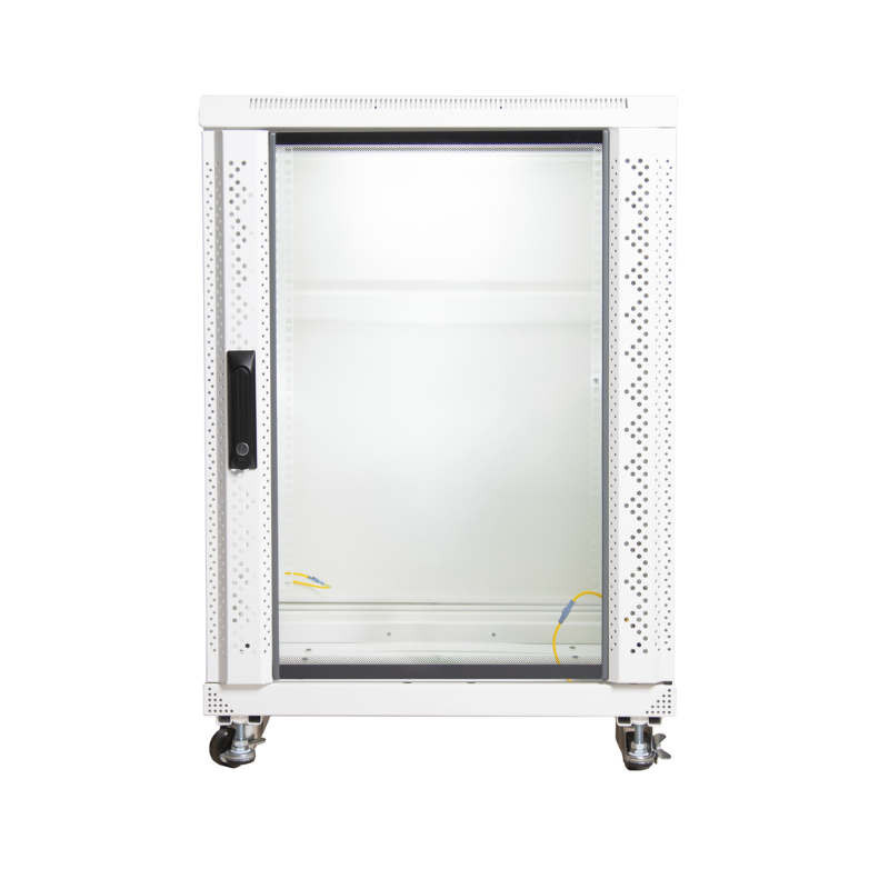 Armario RACK 19" tipo suelo de 15U 60x60x80 cm. Con puerta delantera de cristal con llave de seguridad. Color Blanco.