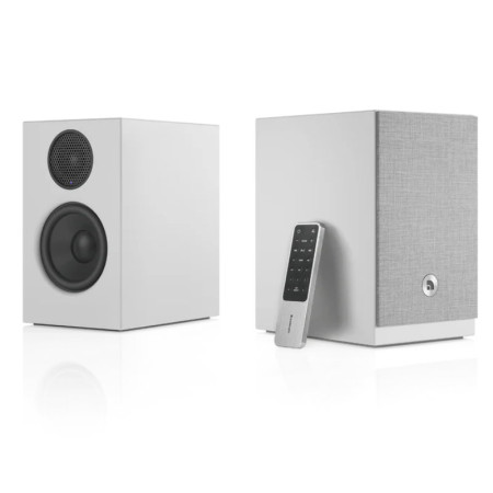 Los Audio Pro A28 son la evolución definitiva de los altavoces de estantería activos, diseñados para quienes buscan un sonido de alta fidelidad sin la necesidad de un receptor o amplificador externo voluminoso. Este par de altavoces estéreo ofrece una versatilidad inigualable: son la solución perfecta tanto para disfrutar de música en streaming con calidad excepcional como para mejorar drásticamente el sonido de tu televisor gracias a su conexión HDMI ARC. Su acabado en blanco mate y su diseño escandinavo minimalista los convierten en una pieza elegante que se integra en cualquier decoración moderna.