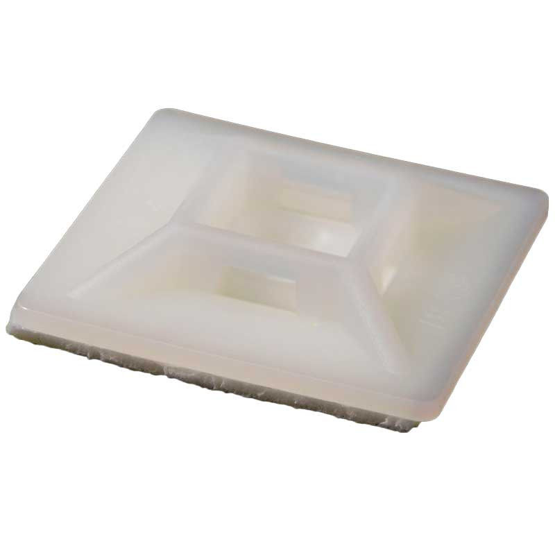 Base adhesiva o tornillos para bridas de hasta 4,9mm. Fabricado en Poliamida 66 (Nylon), color blanco.