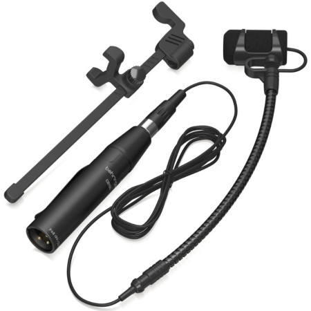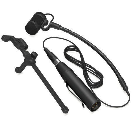 Micrófono condensador de cuello de cisne para aplicaciones de instrumentos de cuerda, metal, percusión y de viento. CON SOPORTE