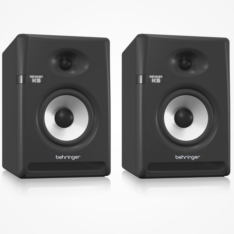 Pareja de monitores activos BEHRINGER NEKKST K5 para monitorización y estudio de grabación con una potencia de 150 vatios de potencia.
