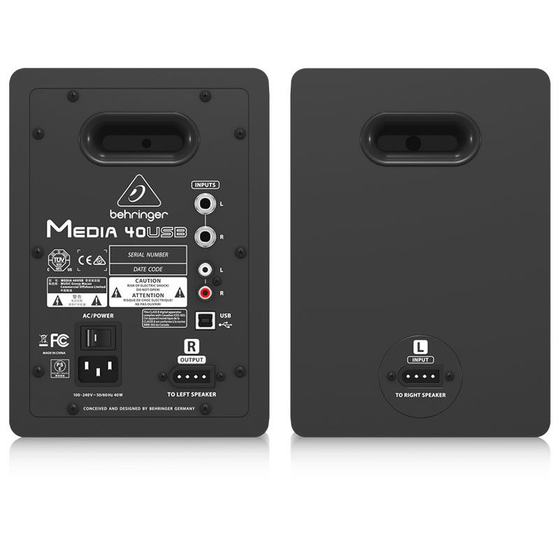 Los BEHRINGER MEDIA 40USB son altavoces biamplificados con 4 amplificadores de última resolución de sonido que ofrecen una potencia máxima de 150 vatios con un altavoz de 4 pulgadas.