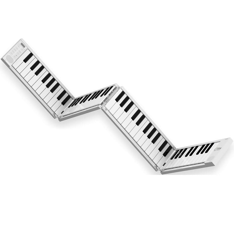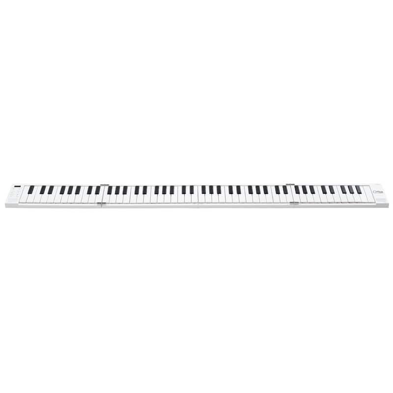 Piano plegable de 88 teclas con 128 estilos de acompañamiento, altavoces integrados, salida de auriculares y batería interna recargable vía USB para tocar en cualquier parte.