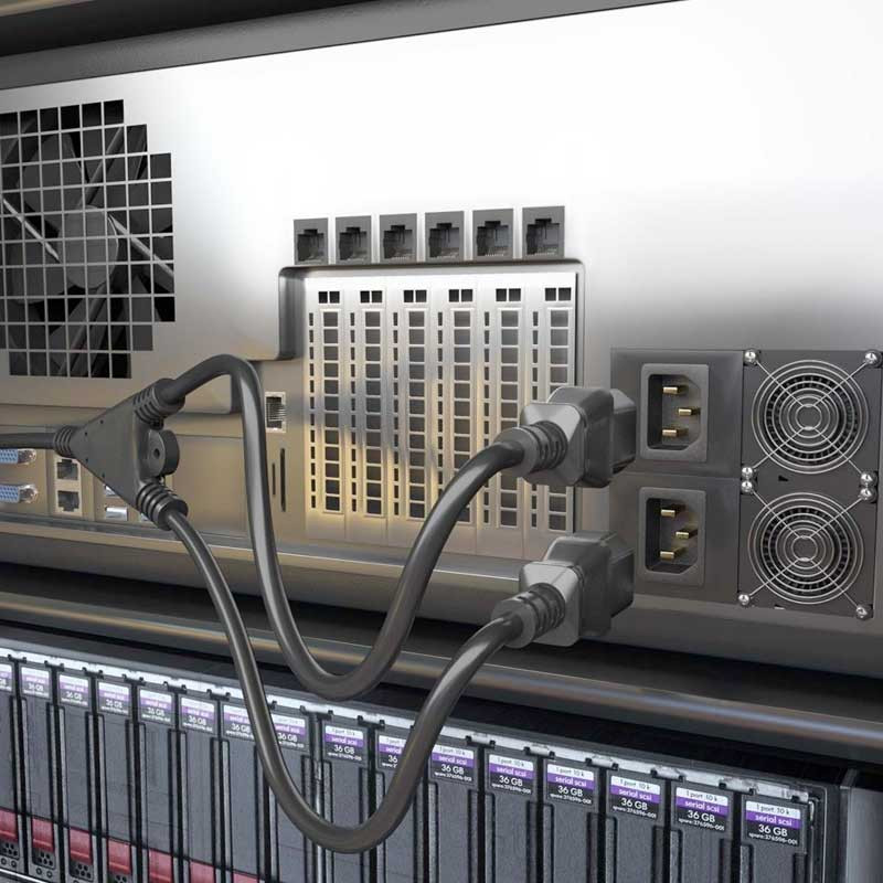 Cable alimentación para CPU con conector CEE7 macho en un extremo y dos conectores C13 hembra en los otros