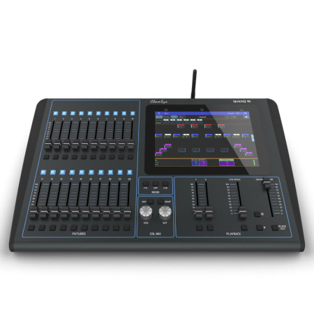 La ChamSys QuickQ 10 es una consola de control de iluminación de 1 universo (512 canales) que redefine la eficiencia en espacios pequeños. Al igual que el resto de la gama QuickQ, su núcleo es una pantalla táctil de 9,7 pulgadas con una interfaz visual intuitiva, diseñada para que cualquier persona, independientemente de su experiencia técnica, pueda crear ambientes y escenas profesionales en minutos.