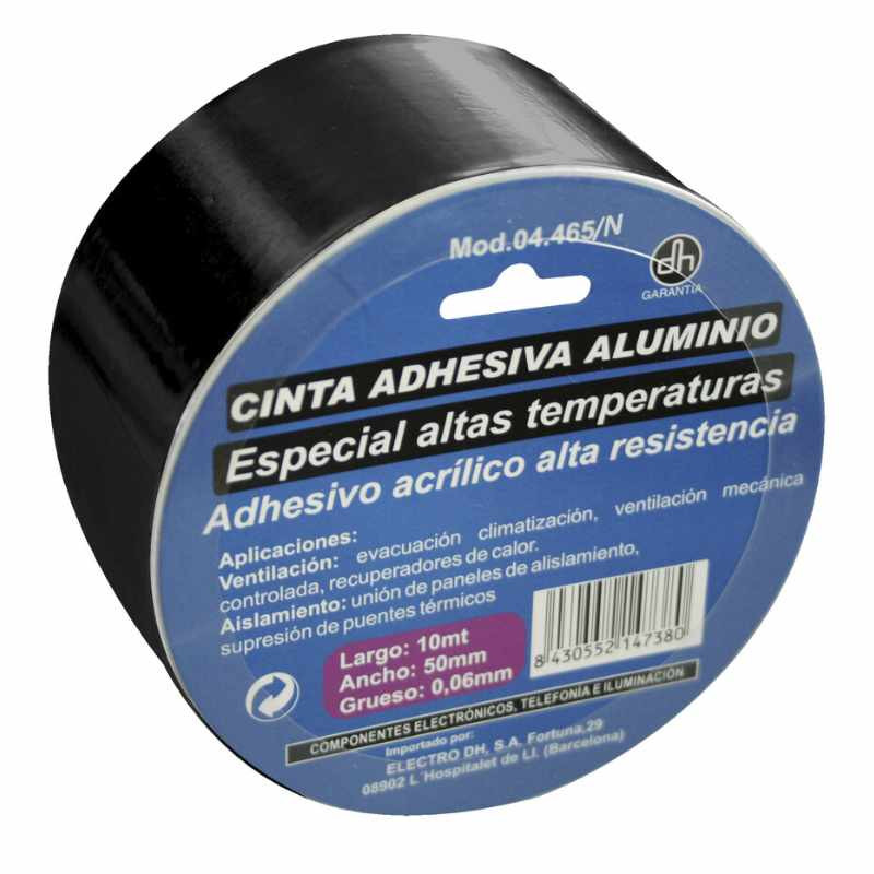 Cinta adhesiva de aluminio con adhesivo de alta resistencia, específicamente diseñada para trabajos donde se requieren características especiales de resistencia térmica o sellado metálico. Es una variante con acabado negro del modelo estándar de cinta de aluminio de la misma referencia.