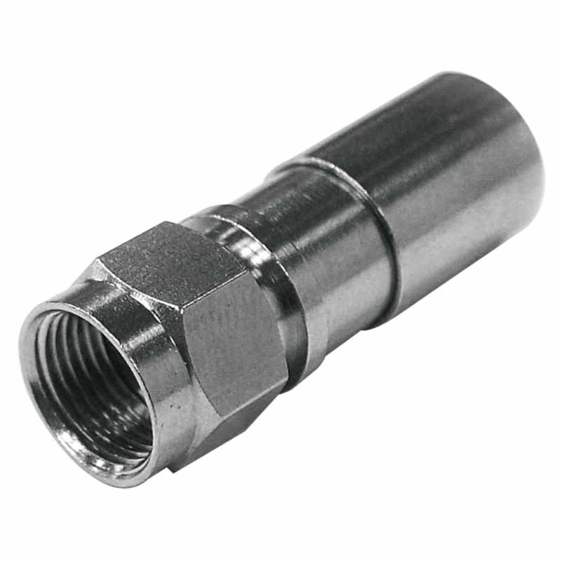 Conector profesional F con sistema de montaje por compresión. Formato recto.