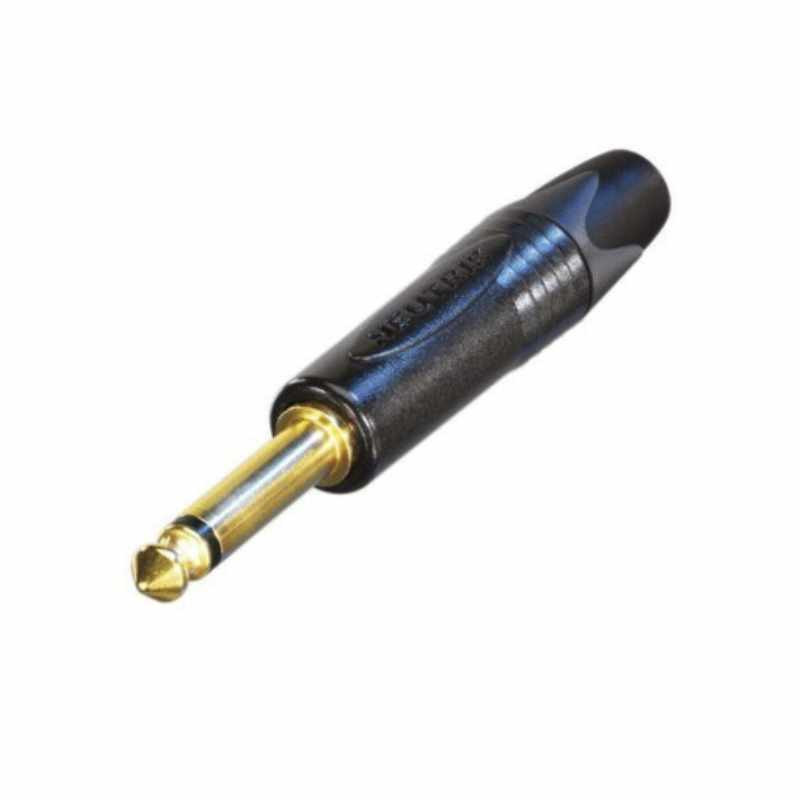 Es un enchufe mono (2 polos) de tipo “phone plug” de 6,35 mm, usado para conectar cables de instrumento, audio o patch cables a equipos como amplificadores, mesas de mezclas, cajas de escenario o guitarras. Su diseño profesional mejora la durabilidad, el manejo y la fiabilidad frente a conectores económicos.