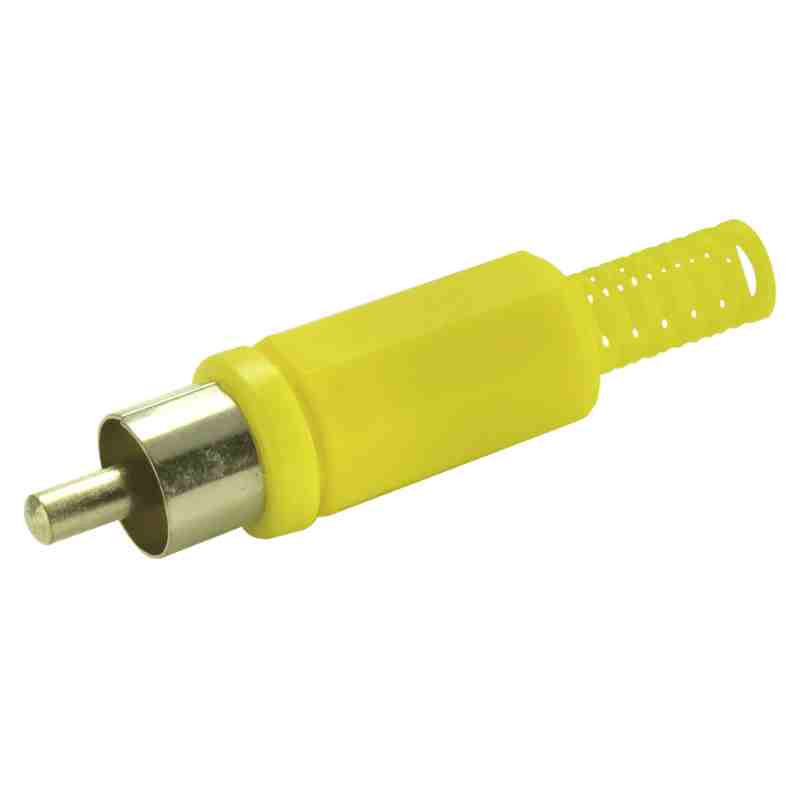 Conector RCA hembra amarillo de plástico. Para cable: Ø 4mm.