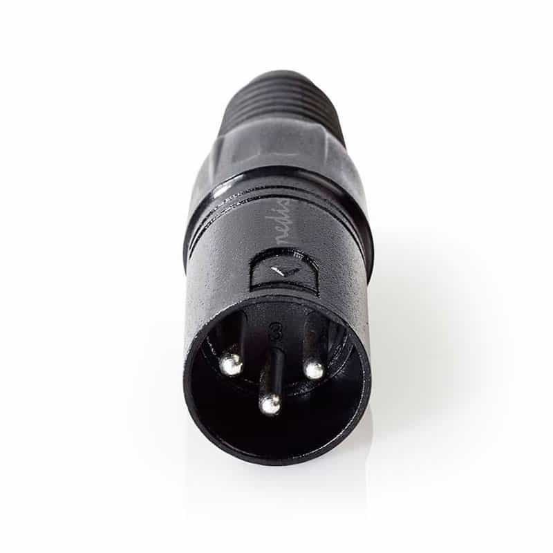 Conector Canon Macho 3 Contactos, Negro, Aéreo, Niquelado.