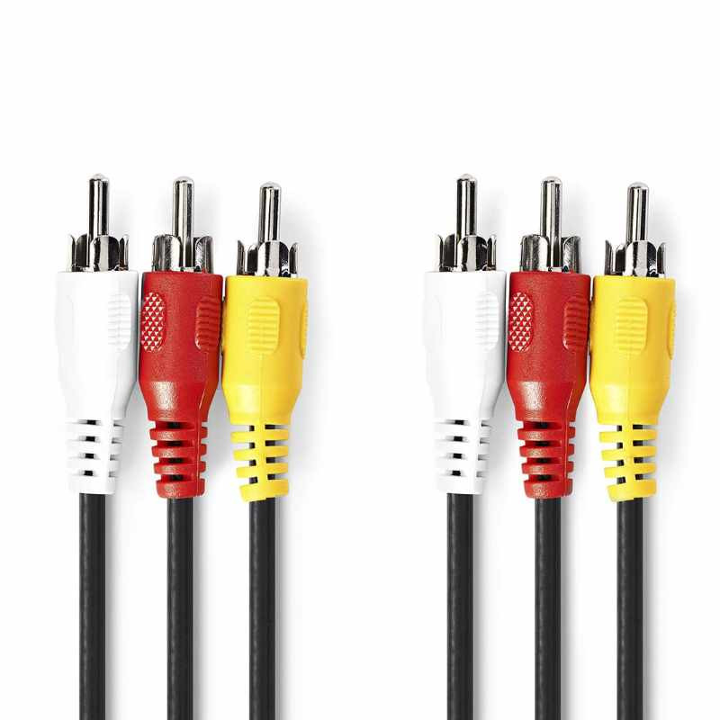 El cable de vídeo compuesto es un cable AV (Audio/Video) con conectores RCA diseñado para transmitir señales de vídeo y audio entre dispositivos electrónicos. Su formato incluye tres conectores RCA macho en cada extremo, típicamente usados para vídeo compuesto (amarillo) y audio estéreo (blanco y rojo). Este tipo de cable se utiliza ampliamente en televisores, consolas de videojuegos, reproductores de DVD, y otros dispositivos que soportan señales analógicas estándar.
