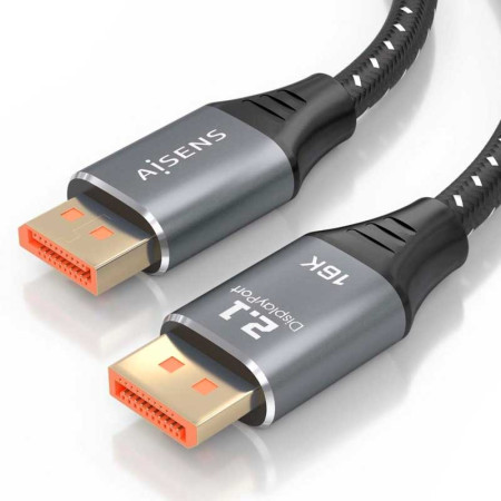 Cable DISPLAYPORT V2.1 16K con conector DP macho (20 pines) en ambos extremos con una longitud de 2 metros. Este cable DisplayPort 16K admite ancho de banda de 80 Gbps, DSC 1.2, FEC, HDCP 2.2 y Display HDR. Compatible con 10K/16K@60Hz, 8K@60Hz/120Hz, 4K@144Hz/165Hz/240Hz, 2K@240Hz. Ideal para tareas gráficas intensivas, creación de contenido y juegos inmersivos.