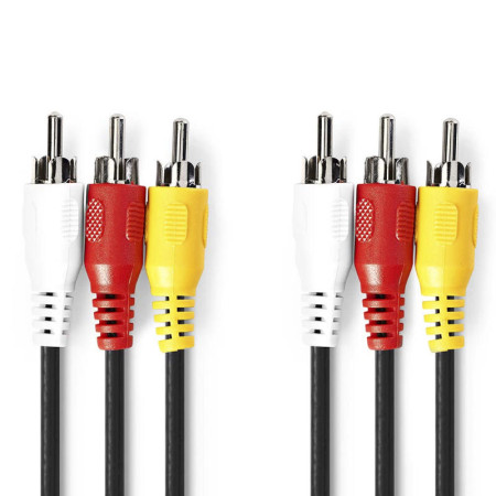 Cable de video compuesto (3x RCA) diseñado para transmitir señales de video analógico y audio estéreo. Es el cable estándar utilizado para conectar equipos antiguos (reproductores de DVD, videoconsolas clásicas como PS2 o Wii, decodificadores) a televisores con entrada RCA (Amarillo, Blanco y Rojo).