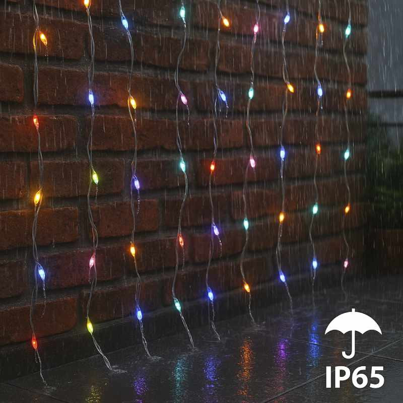 Ilumina tus espacios con estilo gracias a esta cortina de luces LED RGB de 3x2 metros. Su protección IP65 garantiza resistencia a la lluvia y al polvo, perfecta para terrazas, balcones o interiores. Con bajo consumo de 3W y una gama multicolor vibrante, es ideal para eventos, decoración navideña o crear ambientes únicos todo el año.