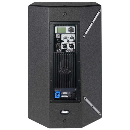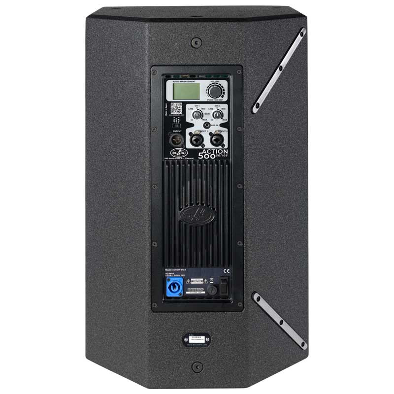 En su parte trasera el Action-512 incorpora 2 entradas de señal, ofreciendo una mayor versatilidad en el uso del sistema, además, la pantalla de LCD permite el uso de la tecnología DAScontrol™ para la selección de hasta 3 presets diferentes (Live, Dance y Vocal) y filtros HPF y LPF que permite la optimización del uso de subgraves. Además la iluminación del logo sirve también para indicar el límite del sistema.