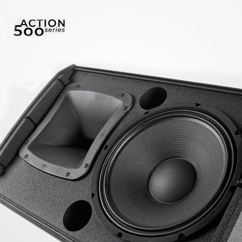 El altavoz amplificado Action-512 está fabricado en madera de abedul y con un recubrimiento de pintura black ISO-Flex diseñado para conseguir una alta durabilidad y resistir en los entornos más exigentes.