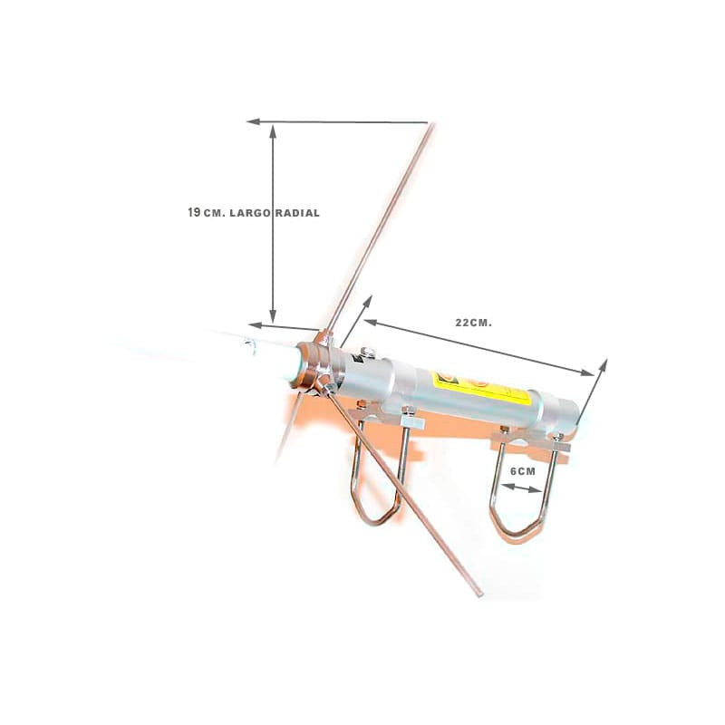 - Longitud de onda: 6/8 144 Mhz., 5/8 430 Mhz.