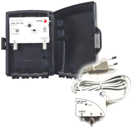 Amplificador mástil FAGOR SBA-103-C48 con alimentador FAGOR APB-224-M