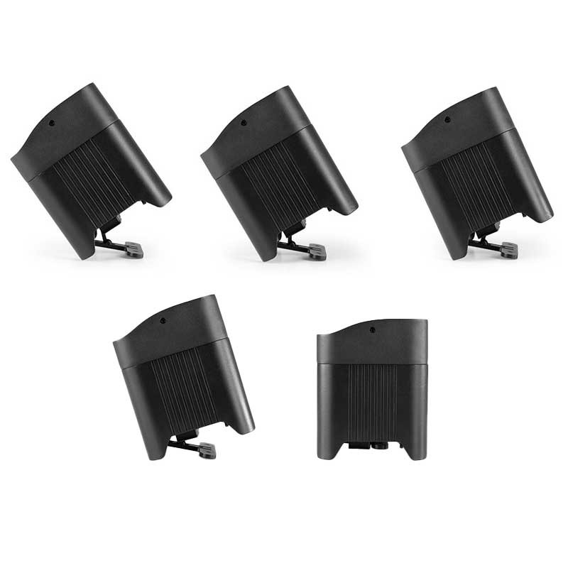 El BBP59 es un foco Par compacto con batería ideal para iluminar paredes o acentuar elementos. El BBP59 es IP65 para trabajar en interior y exterior. Está equipado con 9x LEDs de super brillo 12W RGBWA-UV y batería reemplazable interna que permite trabajar hasta 18 horas con carga completa, dependiendo de colores e intensidad. Su pie ajustable permite fijar la unidad en diferentes ángulos. El BBP59 puede controlarse por varios canales, con mando IR y DMX inalámbrico. Esto facilita la interconexión entre unidades.