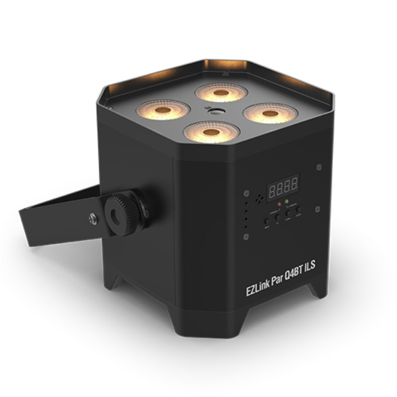El EZLink Par Q4BT ILS es un proyector LED cuádruple (RGBA) diseñado para ofrecer una versatilidad absoluta en eventos donde el tiempo de montaje y la estética son críticos. Su principal ventaja es que es 100% inalámbrico: funciona con una batería de litio interna de alta capacidad y se controla sin necesidad de cables DMX. Esto lo convierte en la herramienta perfecta para iluminar tótems, fachadas o zonas de banquete donde no se dispone de tomas de corriente cercanas, manteniendo un entorno limpio de cables y visualmente impecable.