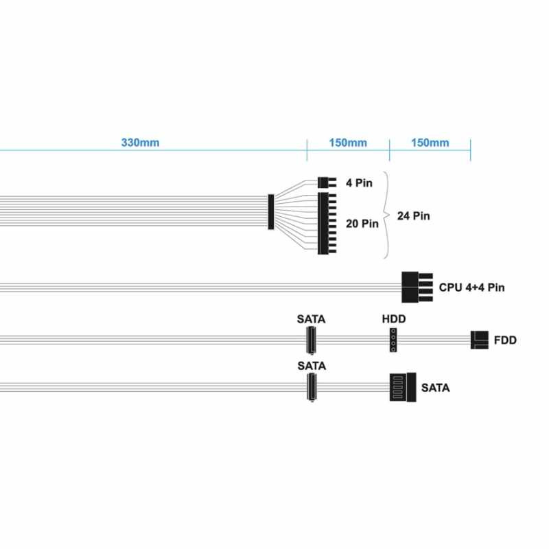 • 1 conector SATA + 1 conector Molex +1 conector mini-Molex (tipo Floppy, 4 pines) 330+150+150mm