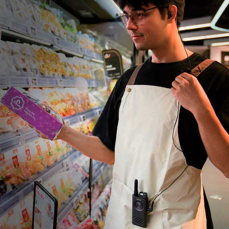 Radio analógica PMR446, PTT dual con PTT frontal. Alcance de 10000 metros cuadrados. Duración de la batería de hasta 27 horas.