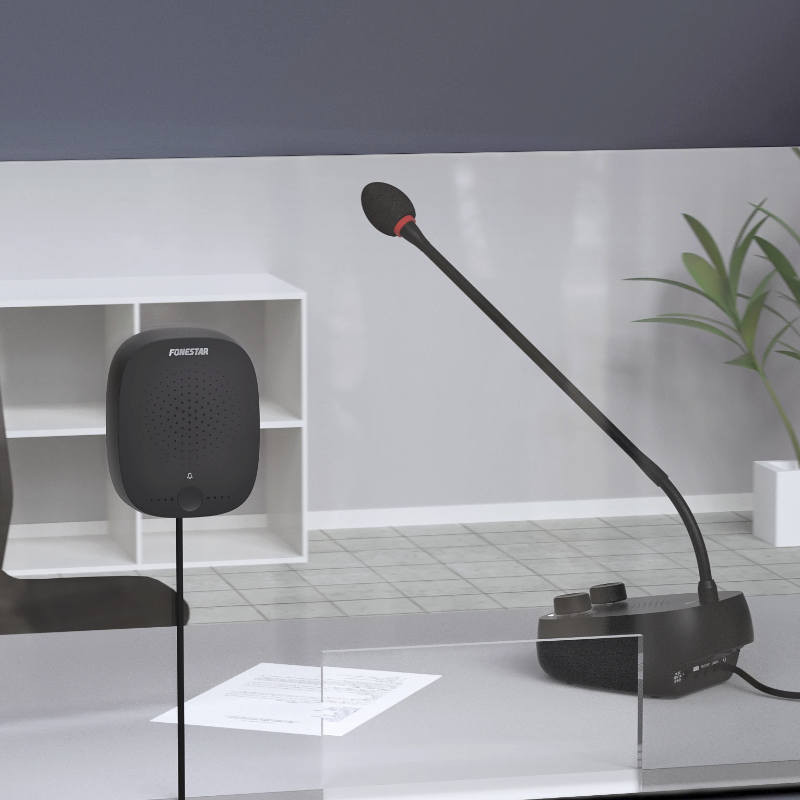 El Fonestar INTERFON-W es un sistema de intercomunicación de ventanilla diseñado para facilitar la comunicación bidireccional en lugares donde existe una separación física por mamparas o cristales. Es una solución ideal para taquillas, bancos, puestos de control y centros sanitarios, donde el ruido ambiental o las barreras protectoras dificultan la conversación.