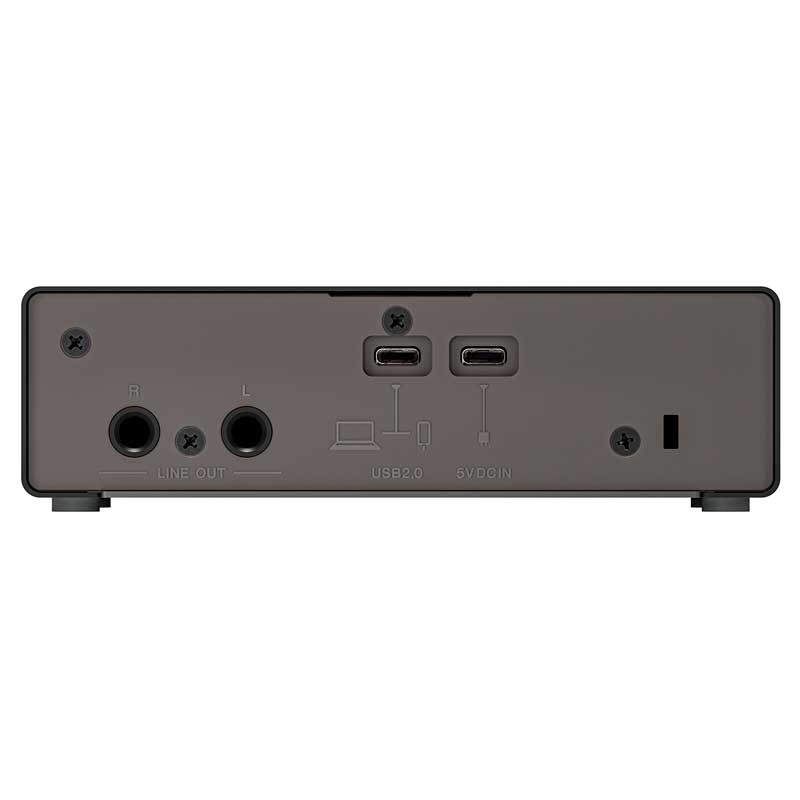 Interfaz de sonido USB-C con 2 entradas y 2 salidas. con soporte de 24 bits/192 kHz, 1 entrada combo y 1 entrada TRS.