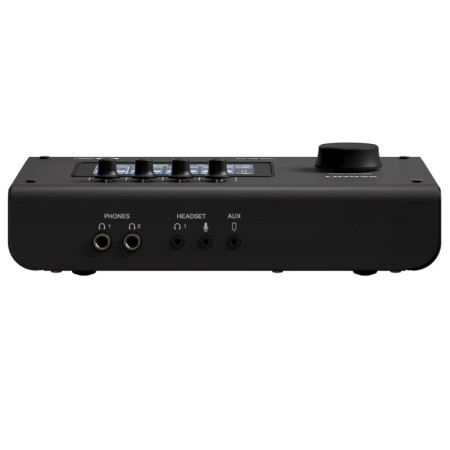 - Preamplificadores URX: Incluye 2 previos de micrófono de alta calidad con un rango de ganancia de 78 dB. Al igual que sus hermanas mayores, permite usar micrófonos exigentes (como el SM7B) sin necesidad de amplificadores externos adicionales.
