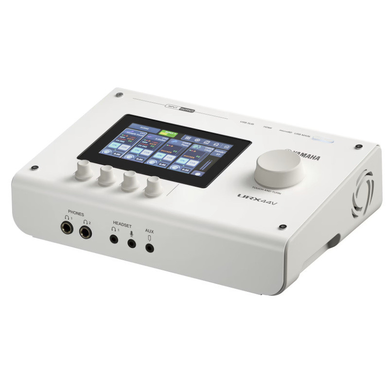 La Yamaha URX44V es el buque insignia de la nueva serie de interfaces de audio de Yamaha. Es una interfaz de audio y vídeo USB-C de sobremesa que combina la calidad de sonido de estudio con funciones avanzadas de captura de vídeo HDMI, lo que la convierte en una de las herramientas más potentes para creadores de contenido actuales.