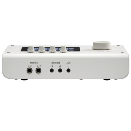 • Preamplificadores URX: Incluye 4 previos de micrófono con un margen de ganancia de 78 dB, permitiendo usar micrófonos dinámicos exigentes (como el SM7B) sin necesidad de Cloudlifter o activadores externos.