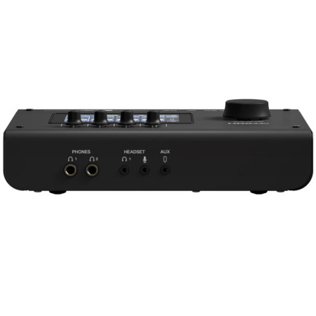 • Preamplificadores URX: Cuenta con 4 previos de micro con un rango de ganancia de 78 dB, suficiente para alimentar micrófonos exigentes (como el Shure SM7B) sin necesidad de activadores externos.