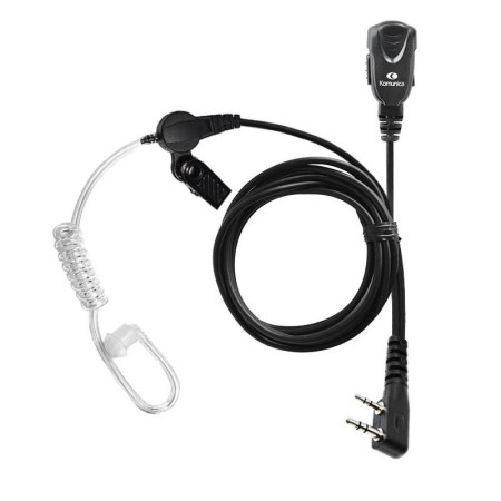 El PWR-TUB-K es un micro-auricular de tubo acústico diseñado por Komunica para ser utilizado con walkie-talkies compatibles con la conexión tipo Kenwood (doble pin). Es un accesorio estándar en sectores de seguridad, eventos y hostelería debido a su diseño discreto y funcional.