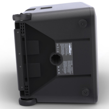 Para facilitar la logística, el chasis está construido en un polímero de alta resistencia que soporta los rigores del transporte. La integración de ruedas de alta resistencia y un asa telescópica de dos etapas (estilo trolley) permite que una sola persona pueda desplazar el equipo por terrenos irregulares sin esfuerzo, convirtiéndolo en la herramienta perfecta para eventos en parques, playas o instalaciones deportivas.