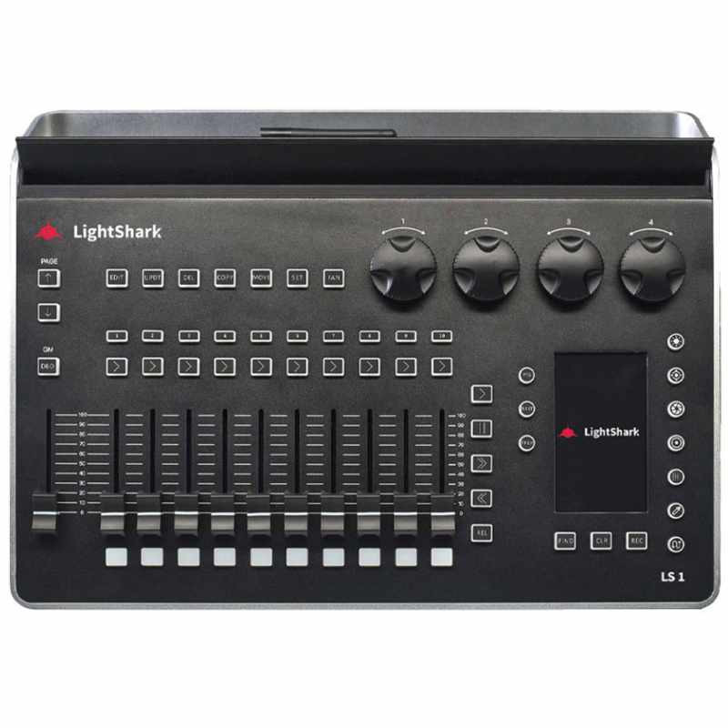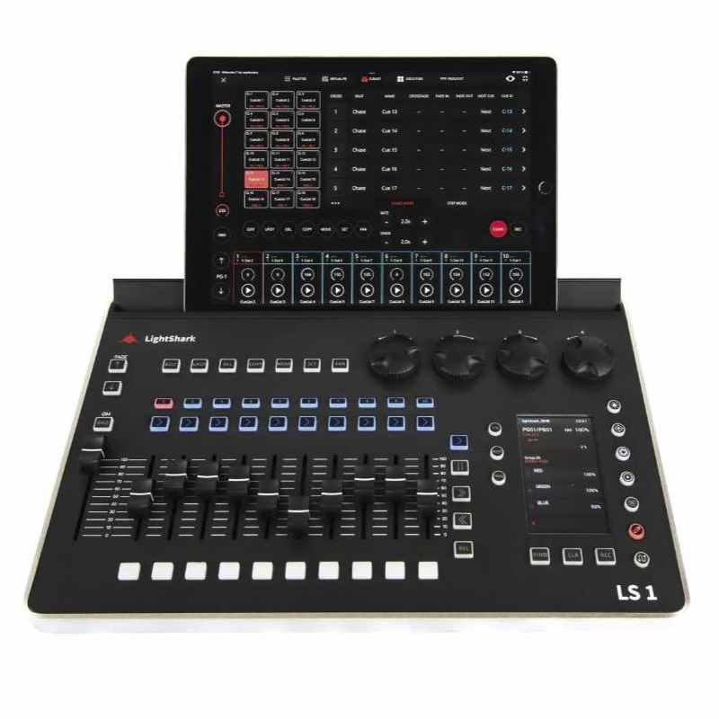 El LS-1 es el controlador insignia de la serie LightShark. Se trata de una consola de control de iluminación "todo en uno" que combina la potencia del software de control digital con la agilidad de una superficie de control física. Su característica más innovadora es que utiliza una interfaz basada en web, lo que permite conectar cualquier dispositivo (tablet, smartphone o PC) a través de Wi-Fi o red local para usarlo como pantalla de visualización, mientras se mantienen los faders y botones físicos para la ejecución.