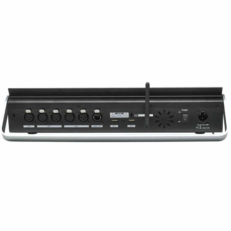 - Controles Físicos: Cuenta con 10 faders de reproducción asignables, una sección de "Grand Master" y encoders rotatorios dedicados para el control de atributos (pan, tilt, color, etc.).