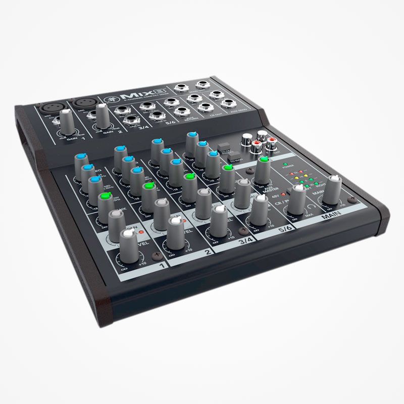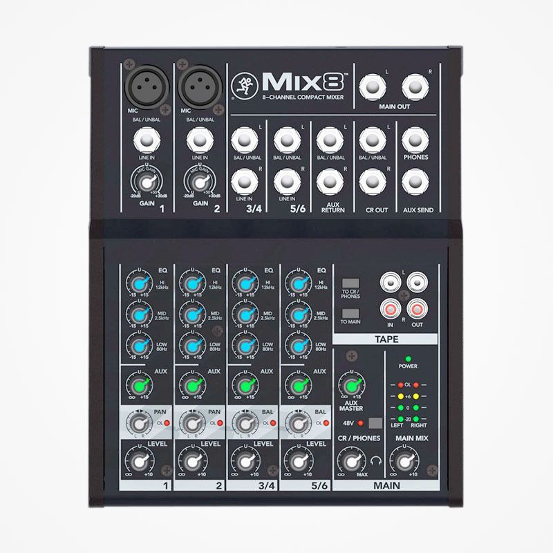El Mackie Mix 8 es un mezclador compacto de 8 canales, el rendimiento es de bajo ruido, 2 entradas de micro / línea con la calidad de audio de nivel de estudio. Los Mezcladores Compactos Mackie Serie Mix son resistentes, con la probada calidad que usted espera de Mackie, el líder mundial en el diseño de mezcladores compactos. Con previos Mackie, probado umbral y diseño de bajo ruido, los mezcladores de la Serie Mix suenan muy bien y mantienen la calidad del audio de cualquier fuente.