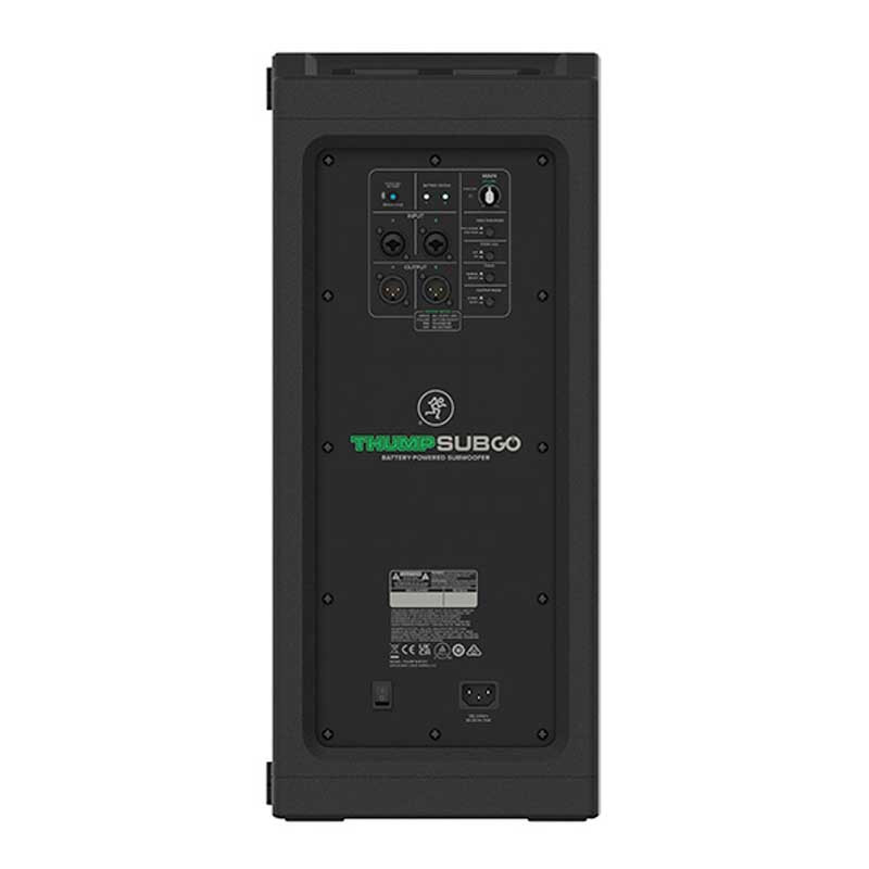 El ThumpSub GO está diseñado para "sacar los graves en cualquier lugar". Proporciona una potente respuesta de graves gracias a dos controladores de graves personalizados de 8 pulgadas y un amplificador de clase D de 400 W. Aunque está optimizado para funcionar a la perfección con el altavoz Thump GO alimentado por batería, es versátil y también es ideal para añadir extensión de graves al equipo Mackie ShowBox o a cualquier altavoz portátil activo con un woofer de hasta 10 pulgadas (sin importar la marca).