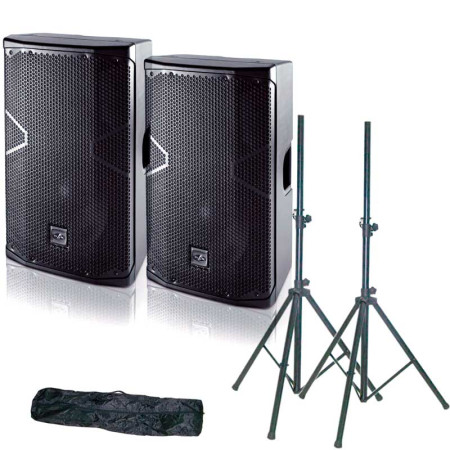 Pack ahorro 2 altavoces VANTEC 15A más pack soportes de suelo.