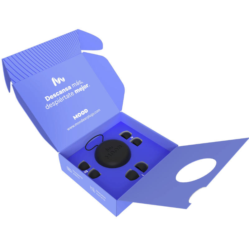 Los tapones auditivos Mood Focus en color negro son la herramienta de la marca diseñada específicamente para mejorar la productividad y la concentración profunda (Deep Work). Se sitúan un escalón por encima de los Chill en cuanto a capacidad de bloqueo, siendo el modelo ideal para quienes necesitan "apagar" las distracciones externas sin llegar al aislamiento total de la versión Pro.